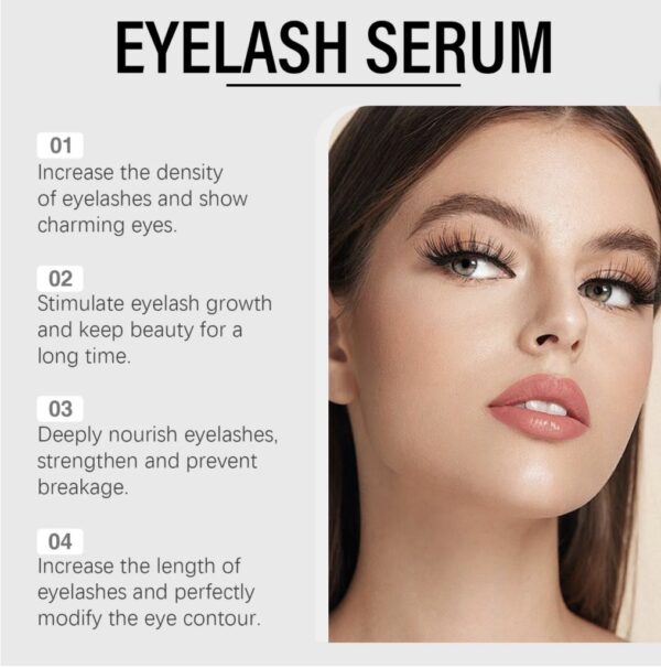 Eye lash serum: مصمم لدعم نمو الرموش بفعالية ولطف. تعمل تركيبته المتقدمة، التي تعتمد على الببتيدات المبتكرة ومجموعة من المستخلصات النباتية الطبيعية، بشكل مكثف على طول الرموش بالكامل، مما يجعلها أطول، وأغمق، وأكثر كثافة، رموش أطول، وأقوى، وأكثر كثافة في 8 أسابيع فقط